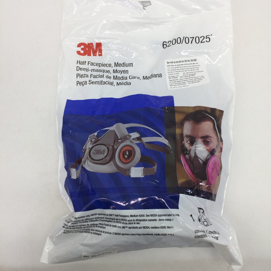 BỘ MẶT NẠ PHÒNG ĐỘC 3M 6200 CHÍNH HÃNG - Mặt nạ chống độc,chống bụi - Mặt nạ phun sơn phun xịt hóa chất, trừ sâu hữu cơHÀNG CHÍNH HÃNG 3M – CÓ CO, CQ, TEM CHỐNG HÀNG GIẢ