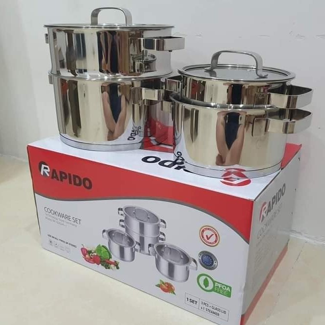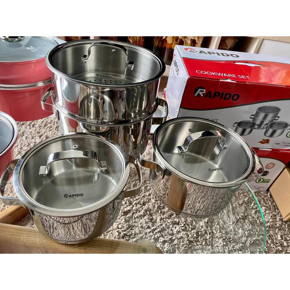 Nhà cửa & Đời sống > Dụng cụ nhà bếp > Nồi || [HÀNG CHÍNH HÃNG] Bộ nồi 3 chiếc kèm xửng hấp Rapido RK182024SCòn hàng