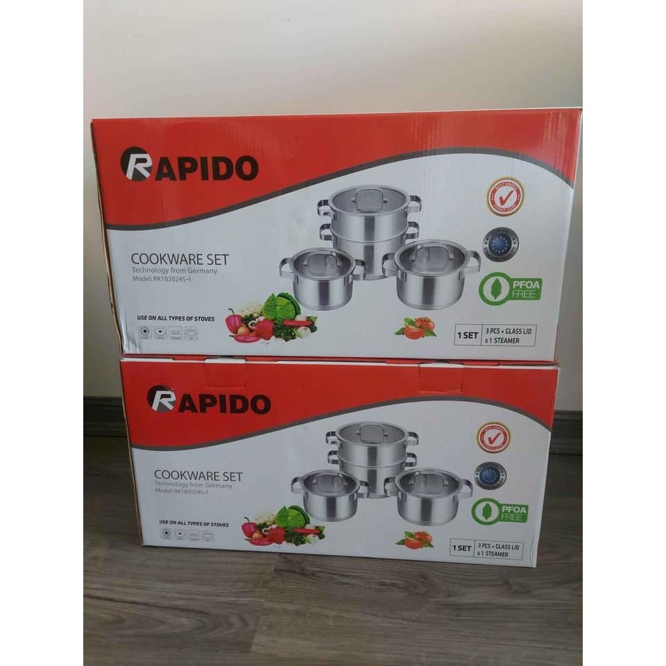 Bộ nồi Rapido được sản xuất theo công nghệ Châu Âu, an toàn về chất lượng.