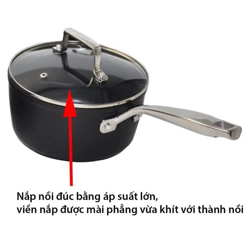 - Nắp đúc kính đúc bằng áp suất lớn, viên mài phẳng vừa khít với thành nồi giúp thức ăn không bị tràn khi sôi.