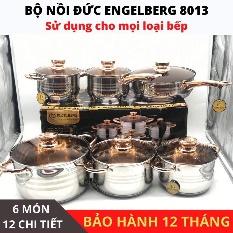 Nhà cửa & Đời sống > Dụng cụ nhà bếp > Nồi || [HÀNG CHÍNH HÀNG] Bộ nồi Đức ENGELBERG bộ nồi Đức 6 món 12 chi tiết, đáy INOX 5 lớp, nắp vung kínhCòn hàng