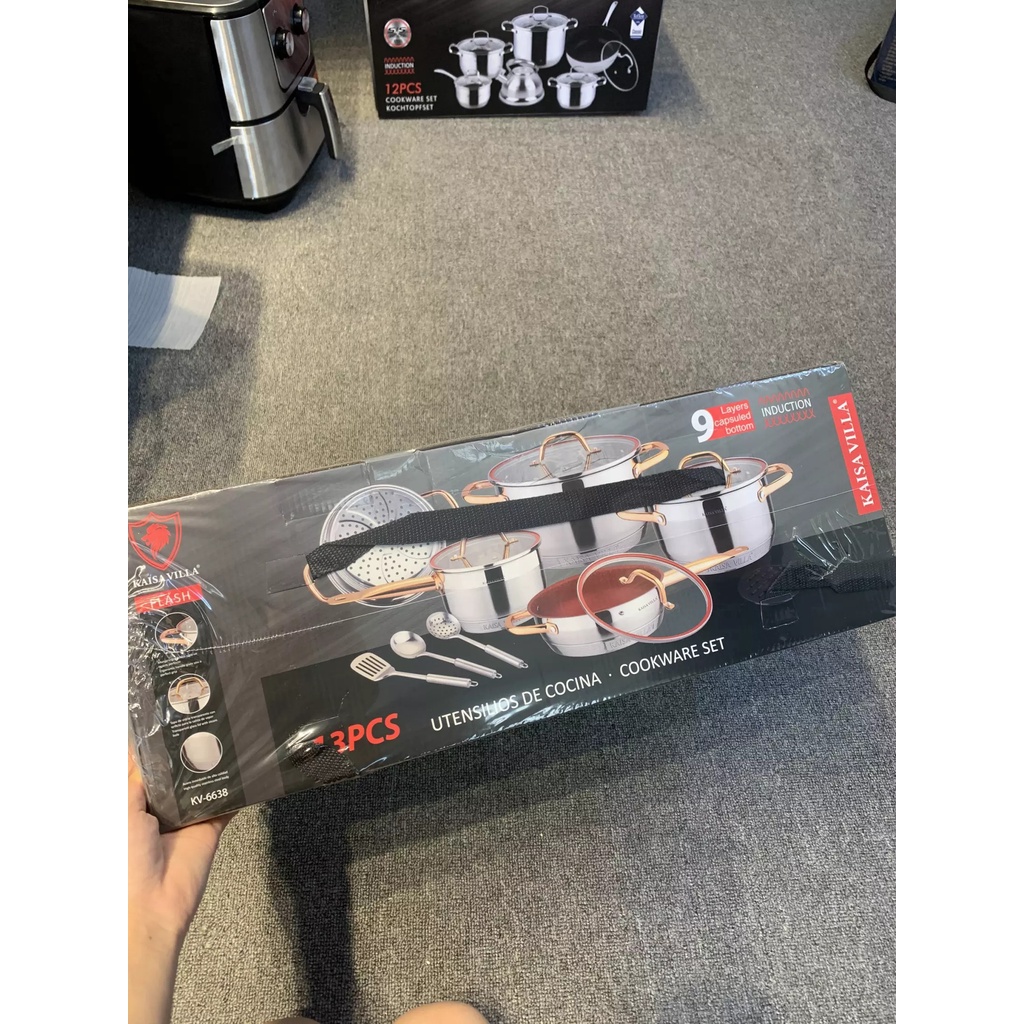 Nhà cửa & Đời sống > Dụng cụ nhà bếp > Nồi || [Hàng chính hãng] Bộ Nồi Đức Kaisa Villa 12 chi tiết - Bộ Nồi Inox 5 Đáy Dùng Cho Mọi Loại Bếp Model KV- 6638Còn hàng