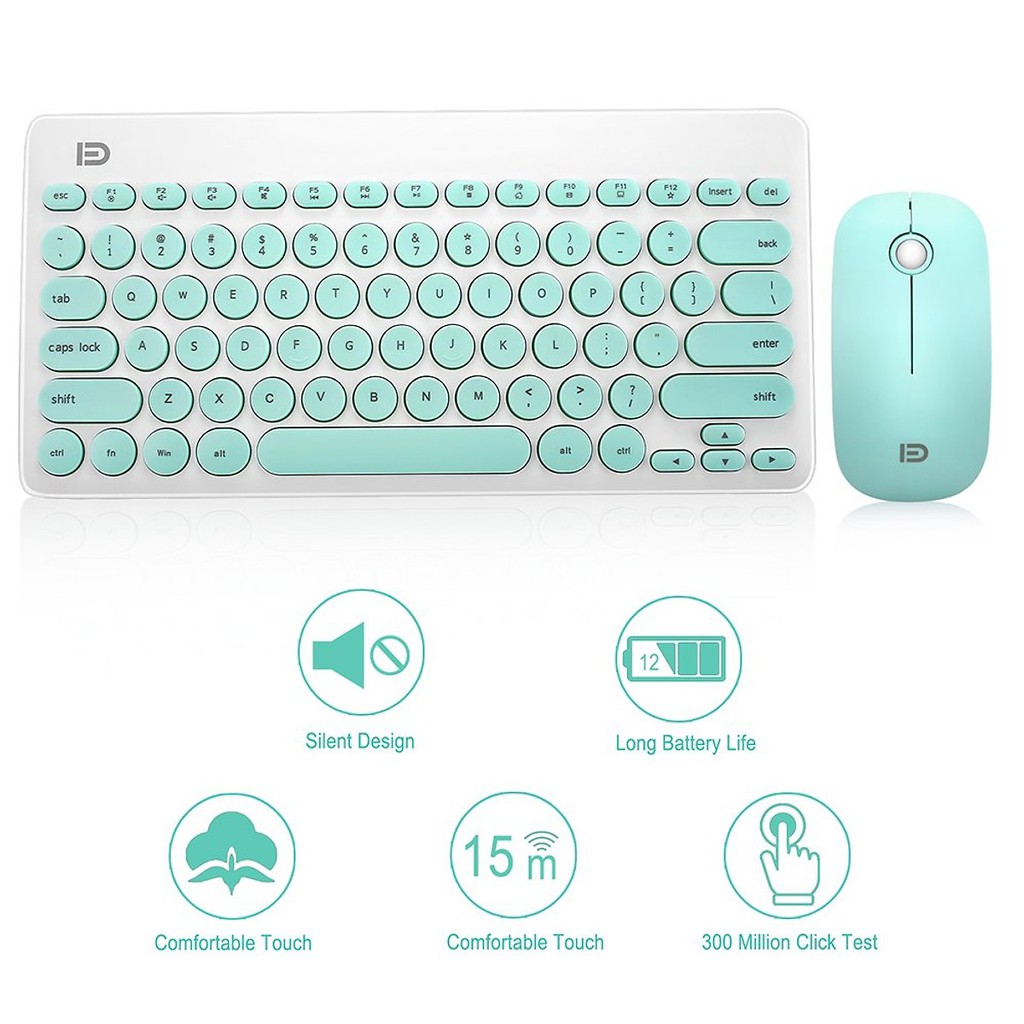 Thiết kế thời trang & nhẹ nhàng: 78 phím kích thước nhỏ gọn với công nghệ phủ bóng và mịn, màu sắc tươi mới làm sáng thiết bị và bàn làm việc của bạn.Bàn phím và chuột kiểu dáng đẹp với các phím không tiếng ồn mang lại cảm giác gõ thoải mái và mượt mà.