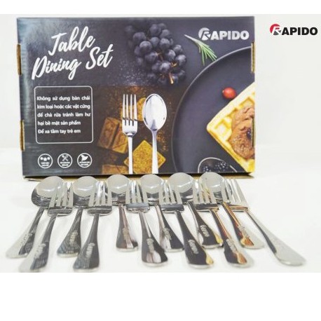 Một bữa ăn ngon không chỉ được tạo nên bởi những món ăn hấp dẫn mà còn phụ thuộc vào sự tinh tế, đẹp mắt của các món dụng cụ được sử dụng trên bàn ăn. Với mong muốn đem đến sự tiện lợi, sang trọng cho bàn ăn người Việt, Rapido ra mắt bộ thìa dĩa Santo cao cấp 12 món đáp ứng nhu cầu của cả gia đình.Bộ thìa dĩa 12 món mang thương hiệu Rapido được sản xuất với công nghệ hiện đại.