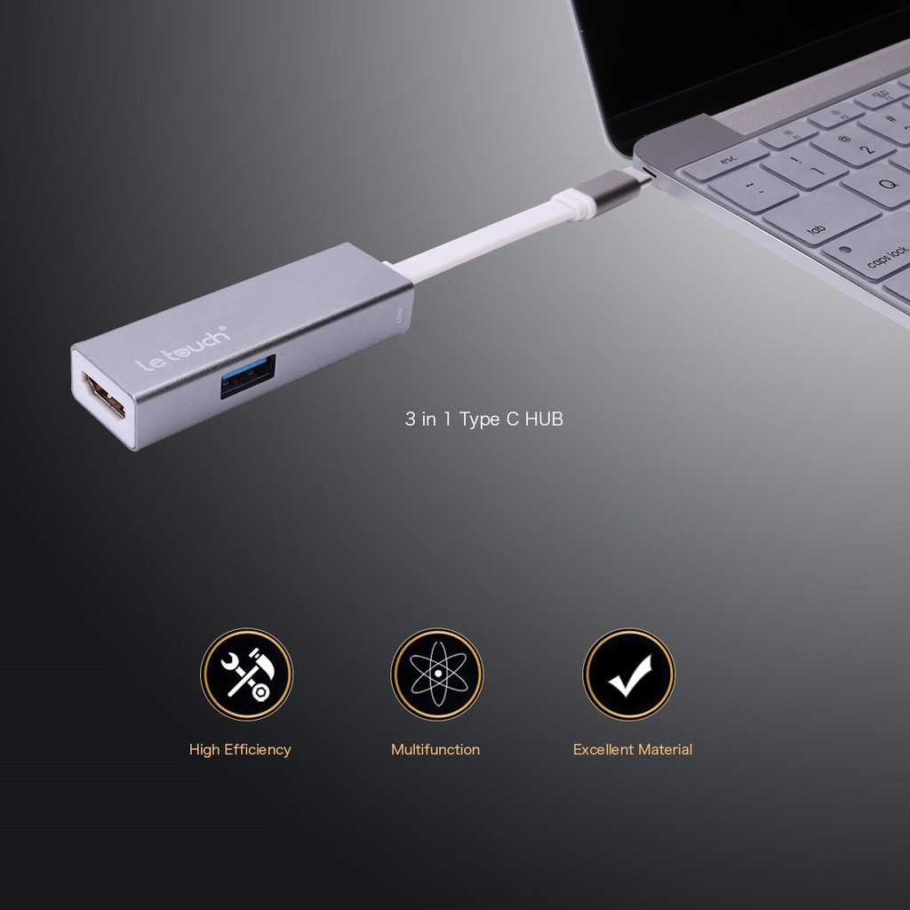 [Hàng Chính Hãng] Cáp Chuyển Đổi Cổng LE TOUCH USB 3.0 TYPE-C HDMI Hub with Power Delivery (Hợp Kim Nhôm) dành cho Macbook Air, Macbook Pro 12", Macbook Pro 13" 15" 2016 và các dòng Laptop thế hệ mới dùng cổng kết nối Type-C.𝒯𝒽ℴ̂𝓃ℊ 𝓈ℴ̂́ 𝓀𝓎̃ 𝓉𝒽𝓊𝒶̣̂𝓉: