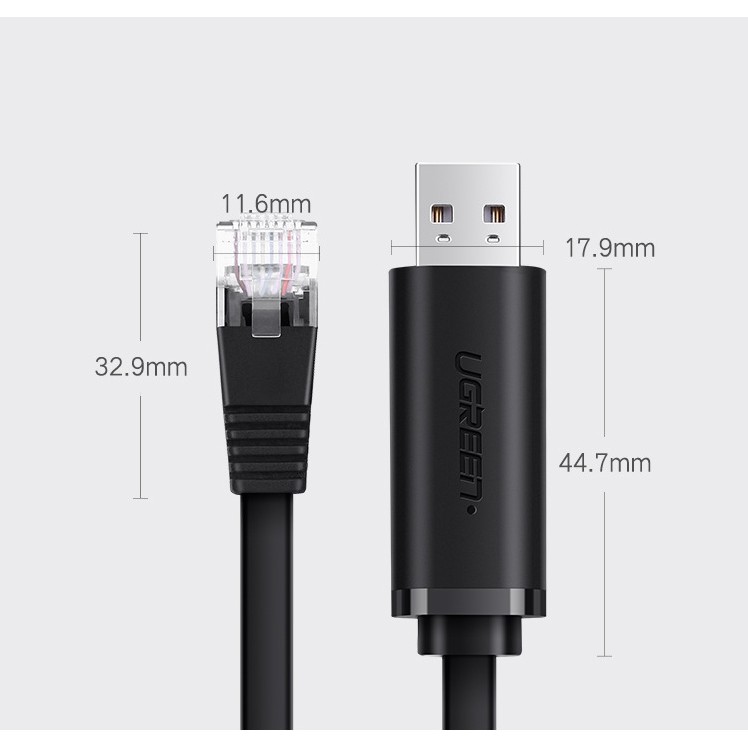 Cáp Console USB chính hãng Ugreen 50773 (cáp cisco, cáp lập trình, cáp điều khiển) chuyên dùng lập trình cho các thiết bị mạng như: server, hub, switch, router, cân bằng tải, thiết bị mạng khác…