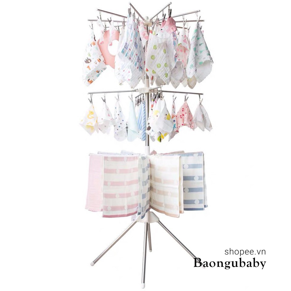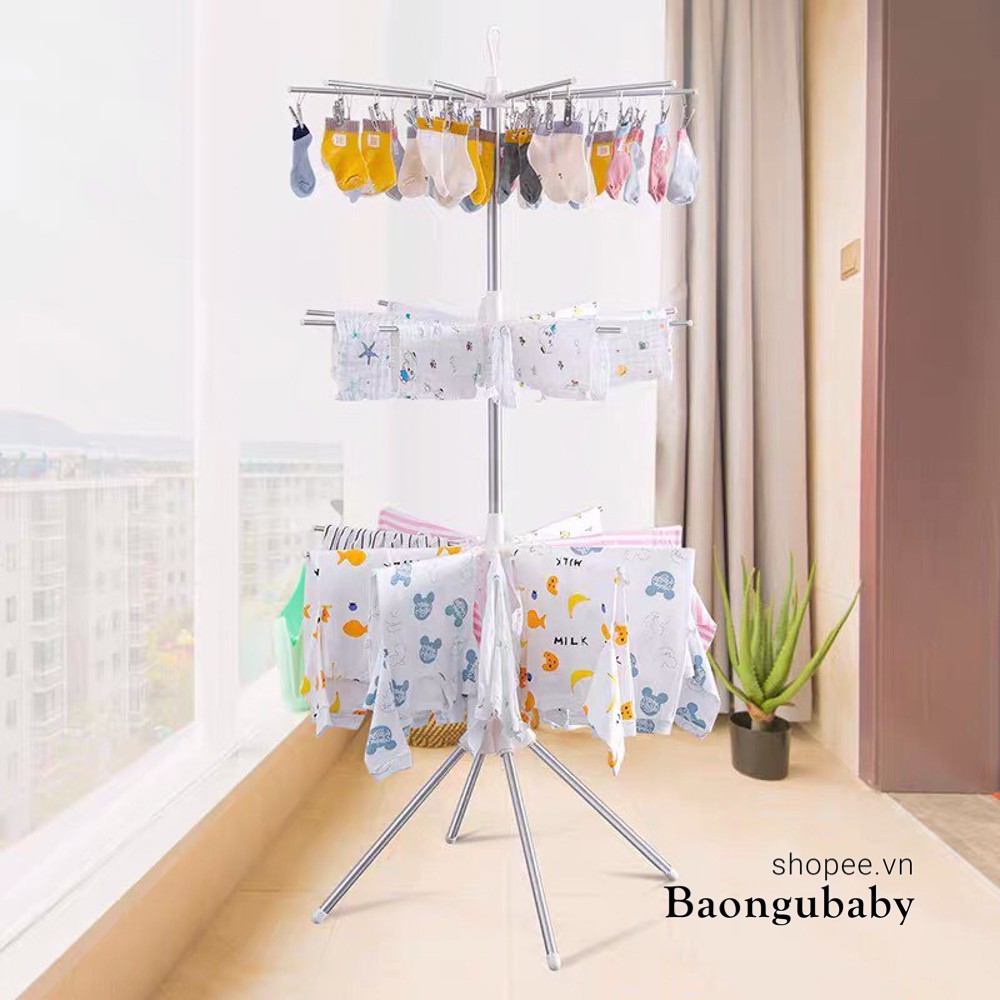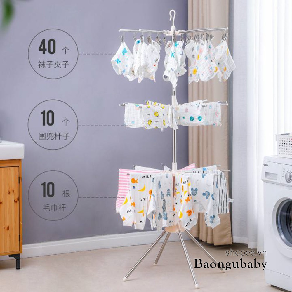 [Hàng chính hãng] Cây phơi đồ cho bé 3 tầng inox đa năng gấp gọn, móc phơi đồ em bé, treo đồ cho trẻ em, bé sơ sinh