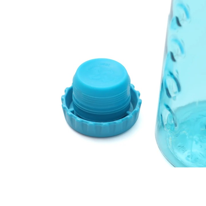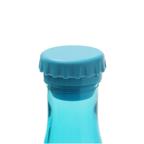Nắp chai bằng nhựa ABS kiểu nở thân với gioăng silicone kín nước và đầu chai nhỏ dễ uống, không bị rớt nước. Mở bằng cách xoay nhẹ và nâng nút chai lên, đóng chặt bằng cách vặn nửa vòng.