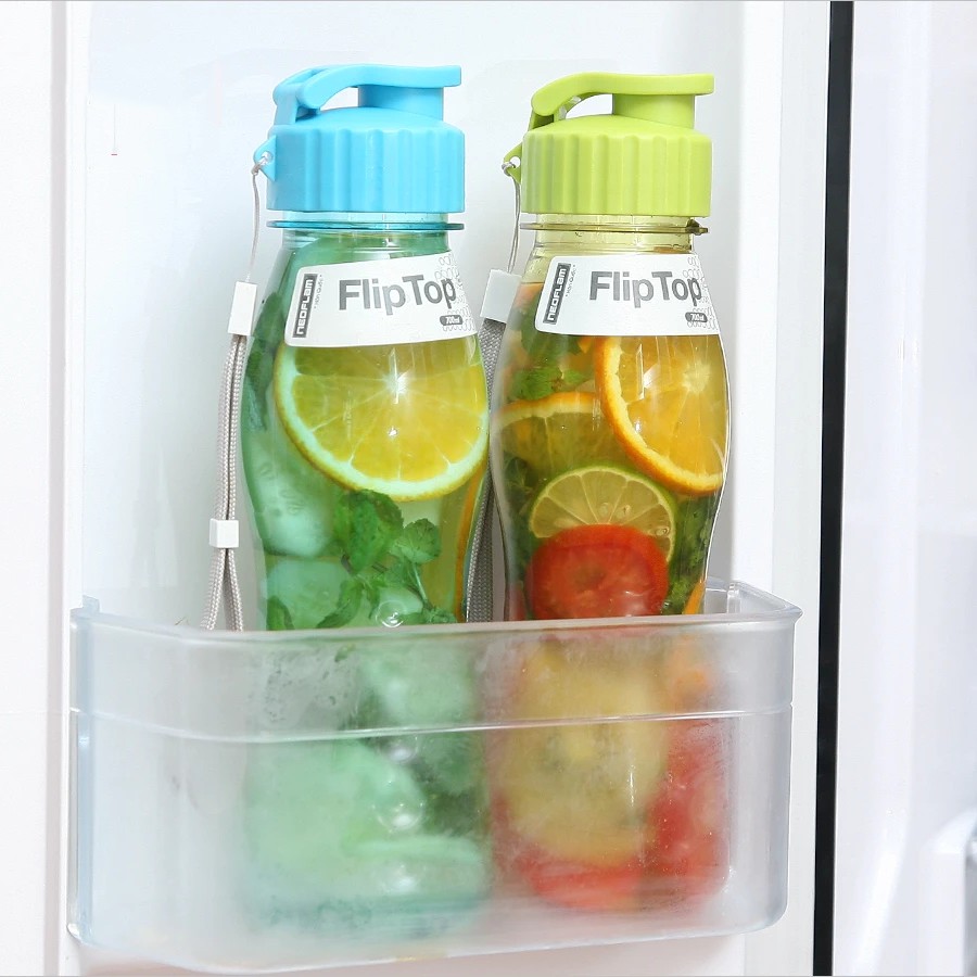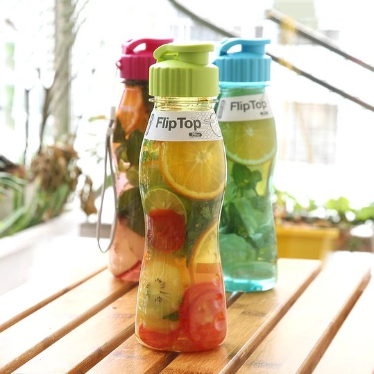 Chai Fliptop có dung tích 700ml, được làm bằng nhựa Tritan trong suốt và nhẵn bóng, an toàn cho các loại thức uống.Nắp chai bằng nhựa PP kiểu ren vặn với gioăng silicone kín nước và đầu uống dễ bật mở, eo chai thon có các chấm lõm dễ cầm nắm.