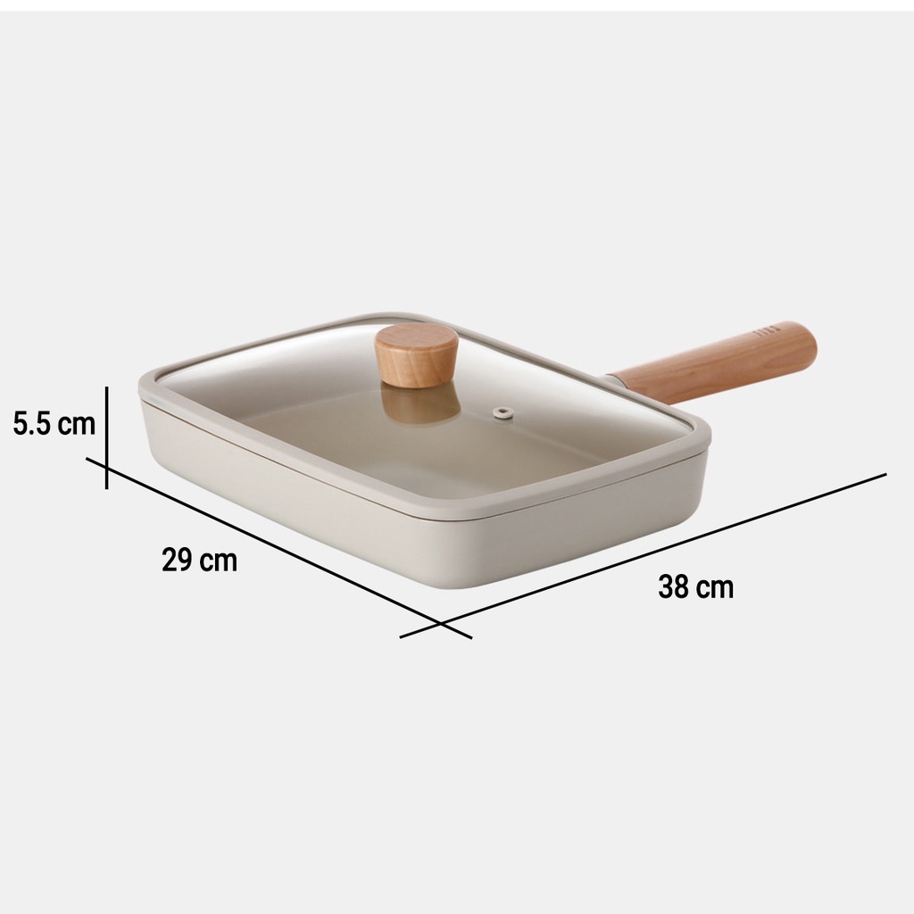 Nhà cửa & Đời sống > Dụng cụ nhà bếp > Chảo || [Hàng chính hãng] Chảo chiên chữ nhật Neoflam Fika 29cm, thành cao 5,5cm, cán gỗ 17cm, nắp kính. Hàng có sẵn giao ngayCòn hàng