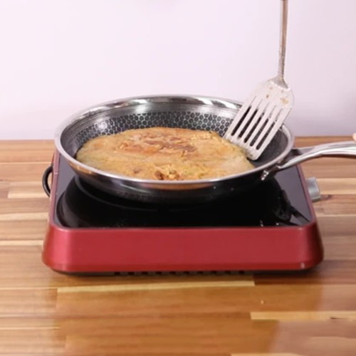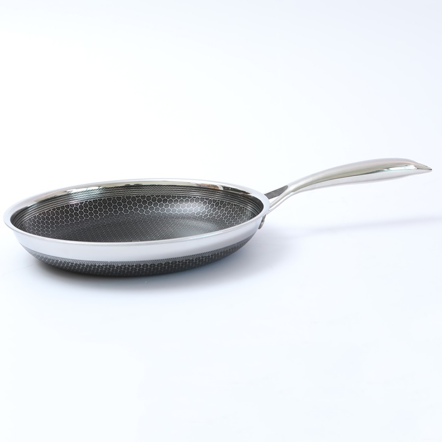 Thân đa lớp inox với kỹ thuật BLACKCUBE mới nhất Hàn Quốc, tráng không dính của DAIKIN, Nhật Bản. Kỹ thuật khắc Blackcube tạo ra nhiều trụ nhỏ inox che chắn lớp chống dính nên KHÔNG DÍNH và KHÔNG TRẦY XƯỚC.Đường kính: 26cm Trọng lượng: 0.88kg