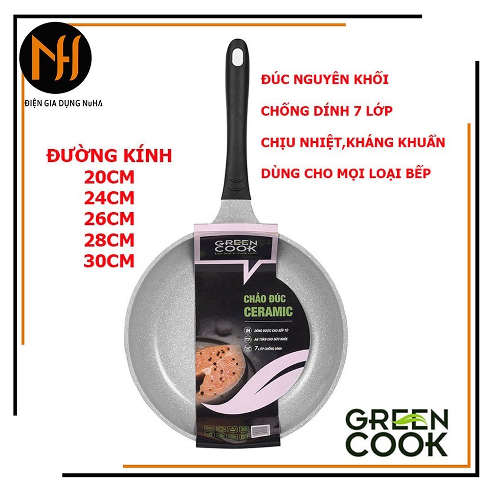 Nhà cửa & Đời sống > Dụng cụ nhà bếp > Chảo || [Hàng chính hãng] Chảo đúc đáy từ chống dính men đá GreenCook GCP03 mẫu mới size 20/24/26/28/30cm công nghệ Hàn quốcCòn hàng
