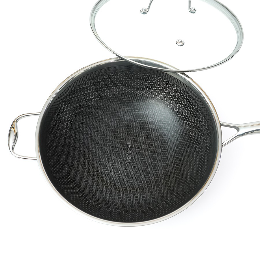 • Tay cầm bằng Inox đúc rỗng, kỹ thuật đặc biệt ghép nối với thành chảo nên không nóng