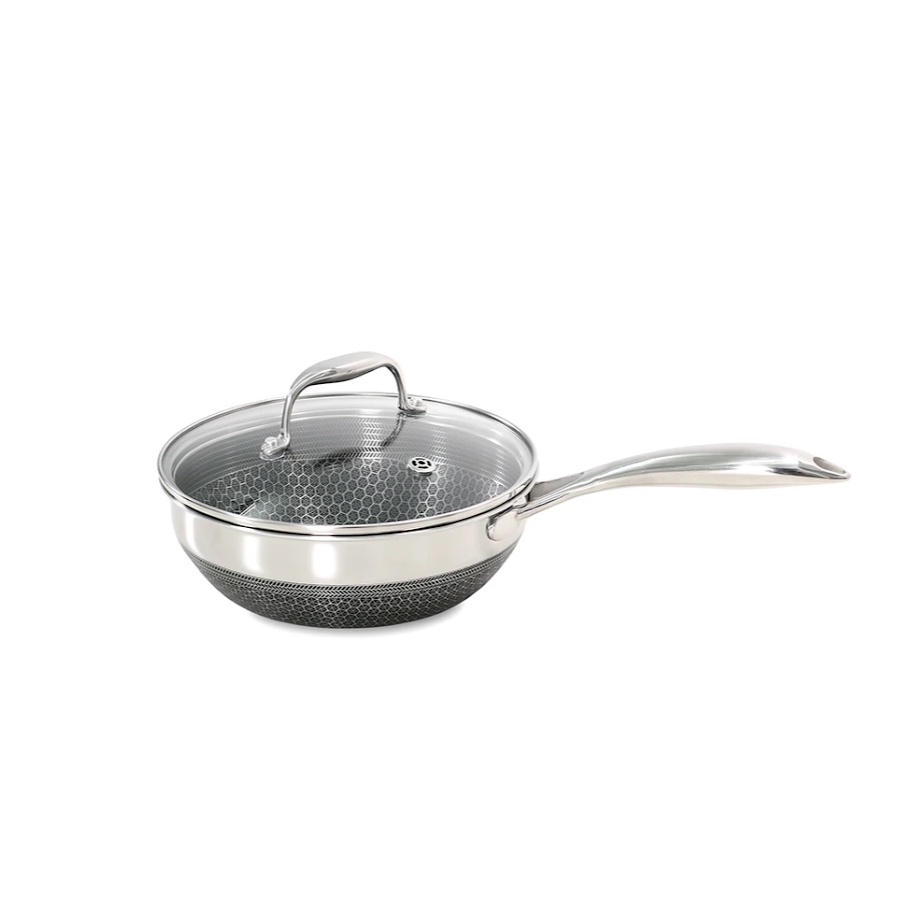 Chảo đáy từ sâu lòng, đường kính 20cm với vung bằng thuỷ tinh chịu nhiệt. Chống dính bằng công nghệ Blackcube tốt nhất hiện nay, cho bạn dùng thoả thích với xẻng thép và không cần kiêng mặn, không lo thực phẩm mặn làm hỏng lớp chống dính. Bằng inox nên dùng tốt với mọi bếp: Từ, ga, điện và hồng ngoại.SẢN PHẨM CỦA BLACKCUBE HÀN QUỐC