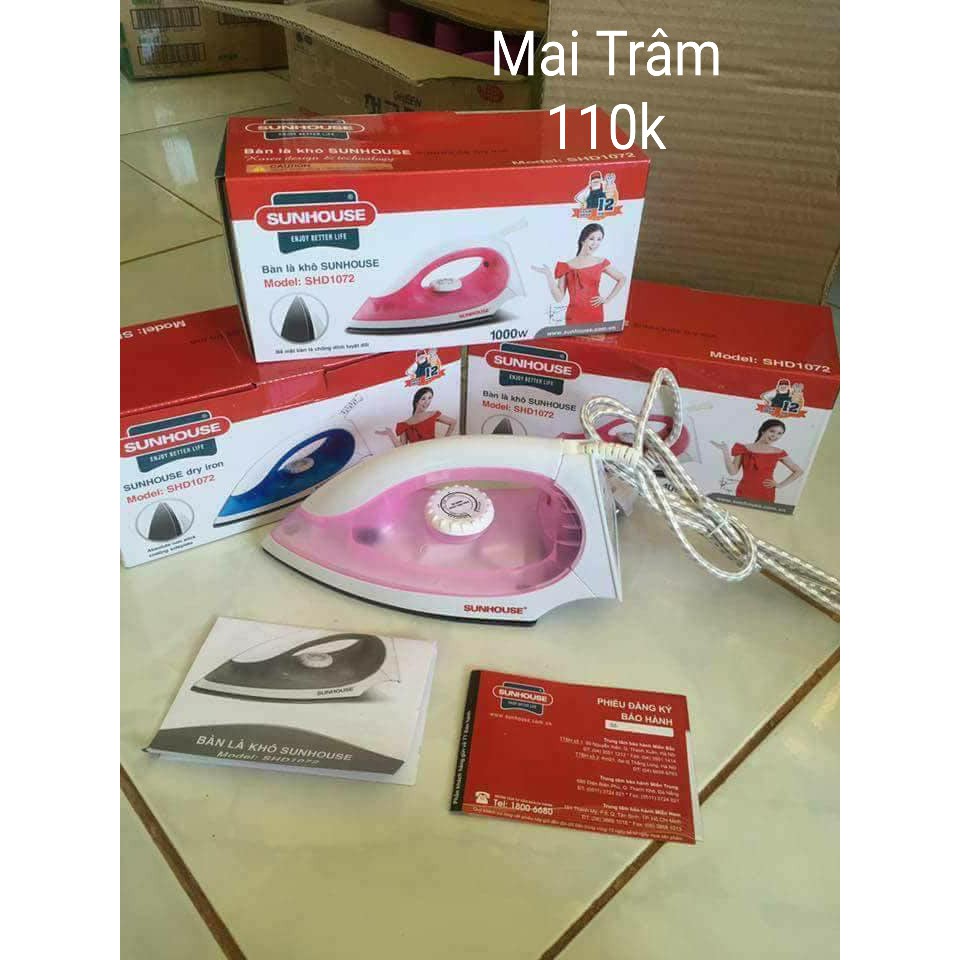 Thiết Bị Điện Gia Dụng > Thiết bị điện gia dụng nhỏ > Bàn là khô & Hơi nước || Hàng chính hãng có bảo hành - Bàn ủi khô Sunhouse SHD1072, công suất 1000W, nhỏ gọn, nhẹ, tiện cho các chuyến đi xa.Còn hàng