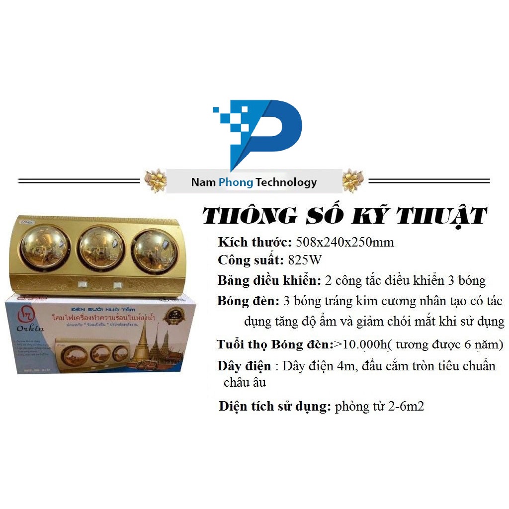 [HÀNG CHÍNH HÃNG] ĐÈN SƯỞI NHÀ TẮM ORKIN 3 BÓNG - HÀNG THÁI LAN CHẤT LƯỢNG NHIỆT TỐT - CHỐNG LÓA MẮT