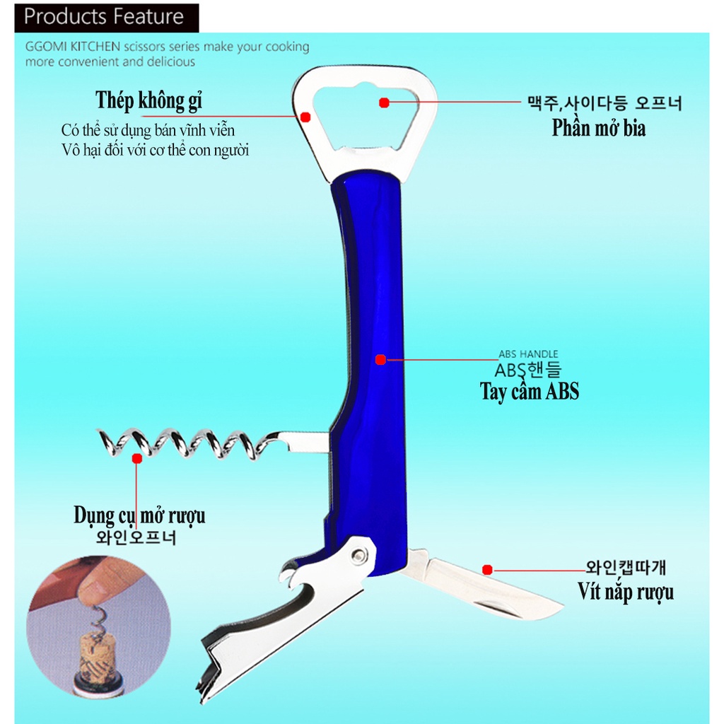 ✨Sản phẩm có nhiều chức năng như: Mở nắp bia, cậy nắp hộp, mở nắp rượu vang, ...