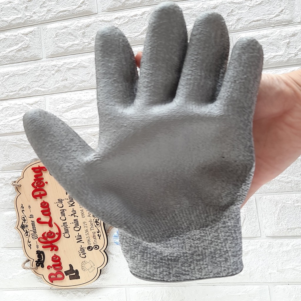 -Lớp phủ PU ở lòng bàn tay để tạo độ bám khi cầm nắm. Ngoài ra cũng có khả năng kháng dầu nhẹ nên có thể tiếp xúc với hóa chất, axit,..