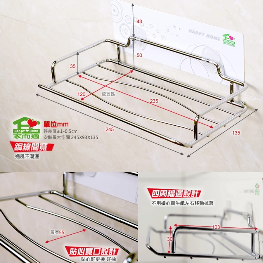 Dùng đựng giấy ăn, giấy bếp dạng hộp.Để hộp giấy lên hoặc úp ngược hộp giấy lên giá và rút giấy ăn ra từ phía dưới rất tiện lợi, giấy luôn sạch và khô. Không khoan, vít vặn. Dính bằng miếng dán PU 100% Đài Loan. Chịu nặng 15kg ( test bởi SGS -Thuỵ Sỹ).🌺Dán tốt trên các bề mặt phẳng, nhẵn như gạch men, đá, kính, gỗ, thép, mê ca...⛔️Không dán vào đường lõm, mạch gạch. Bề mặt sần và tường sơn.