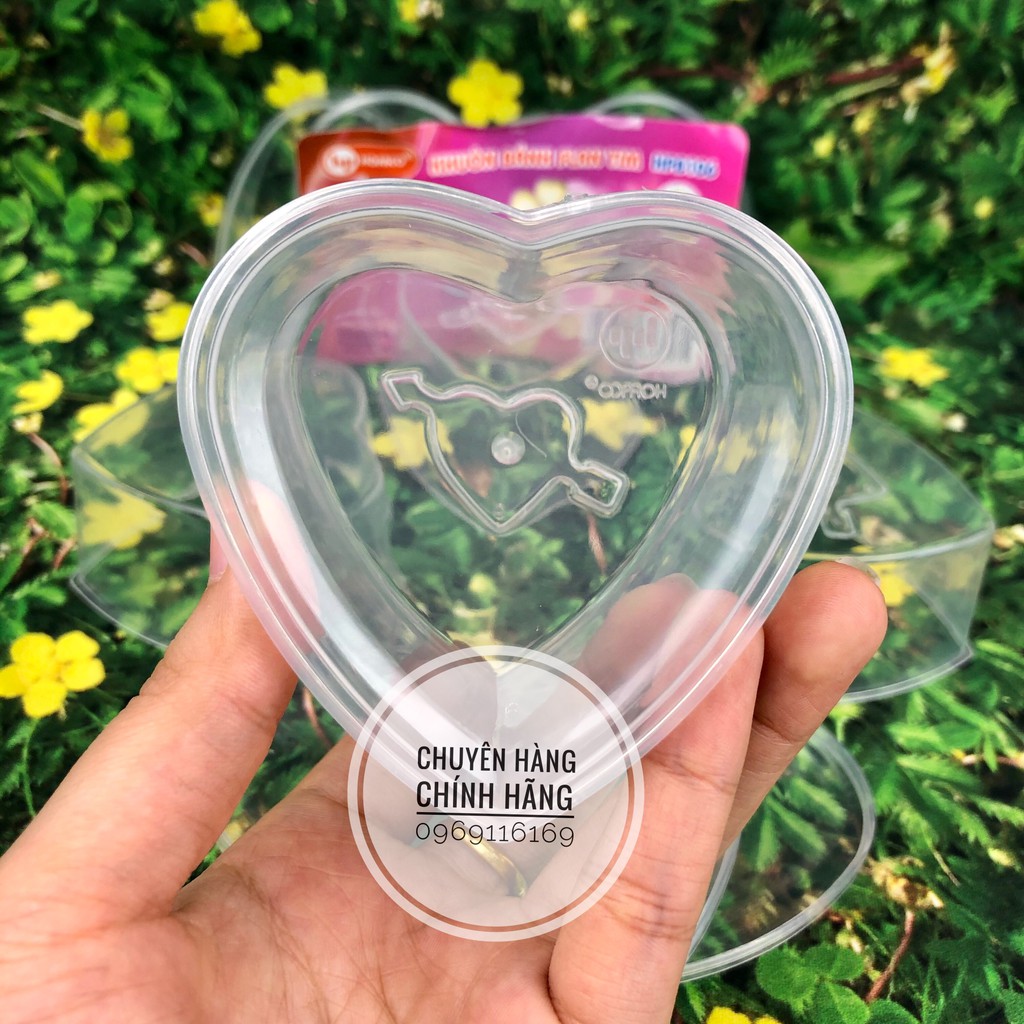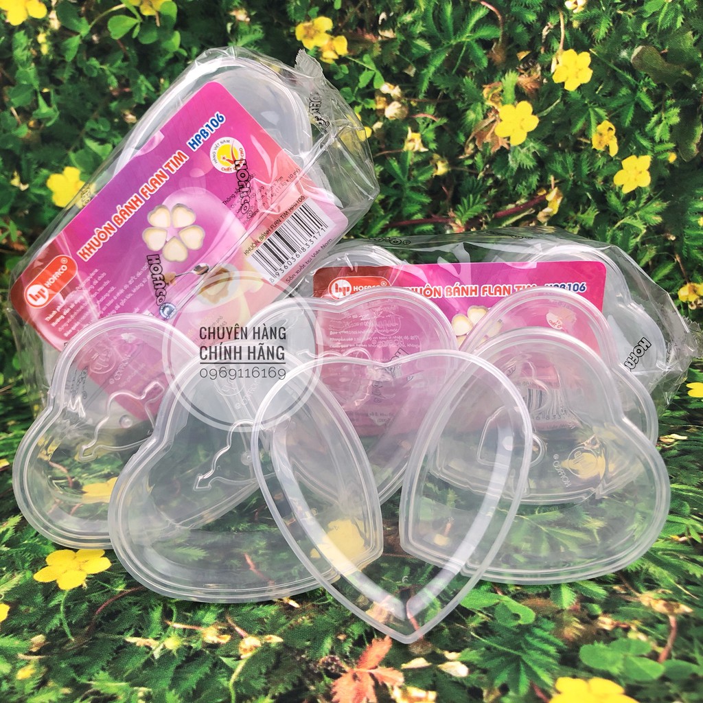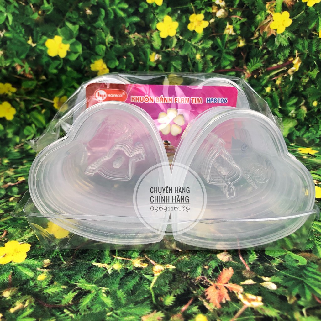 (HÀNG CHÍNH HÃNG HOFACO)·KHUÔN BÁNH FLAN TRÁI TIM CÓ NẮP HPB106 – 10 KHUÔN FLAN IN HÌNH TRÁI TIM, PUDDING, THẠCH RAU CÂU