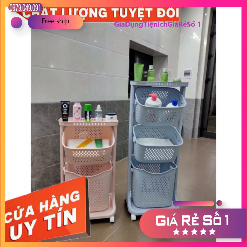 Xin Kính Chào Quý KháchKệ nhựa plastic cao cấp 3 tầng đa năng có bánh xe đựng đồ cho bé, đồ nhà tắm, đồ máy giặt