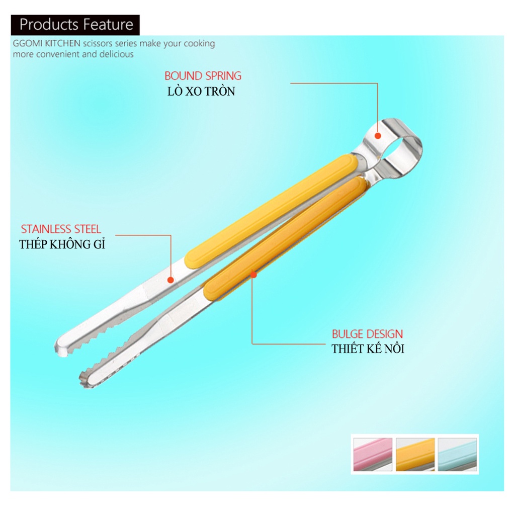 Giới thiệu [HÀNG CHÍNH HÃNG]Kẹp gắp thức ăn đa năng màu sắc pastel bằng thép không gỉ an toàn cho sức khỏe mọi cỡ GGOMi Hàn Quốc