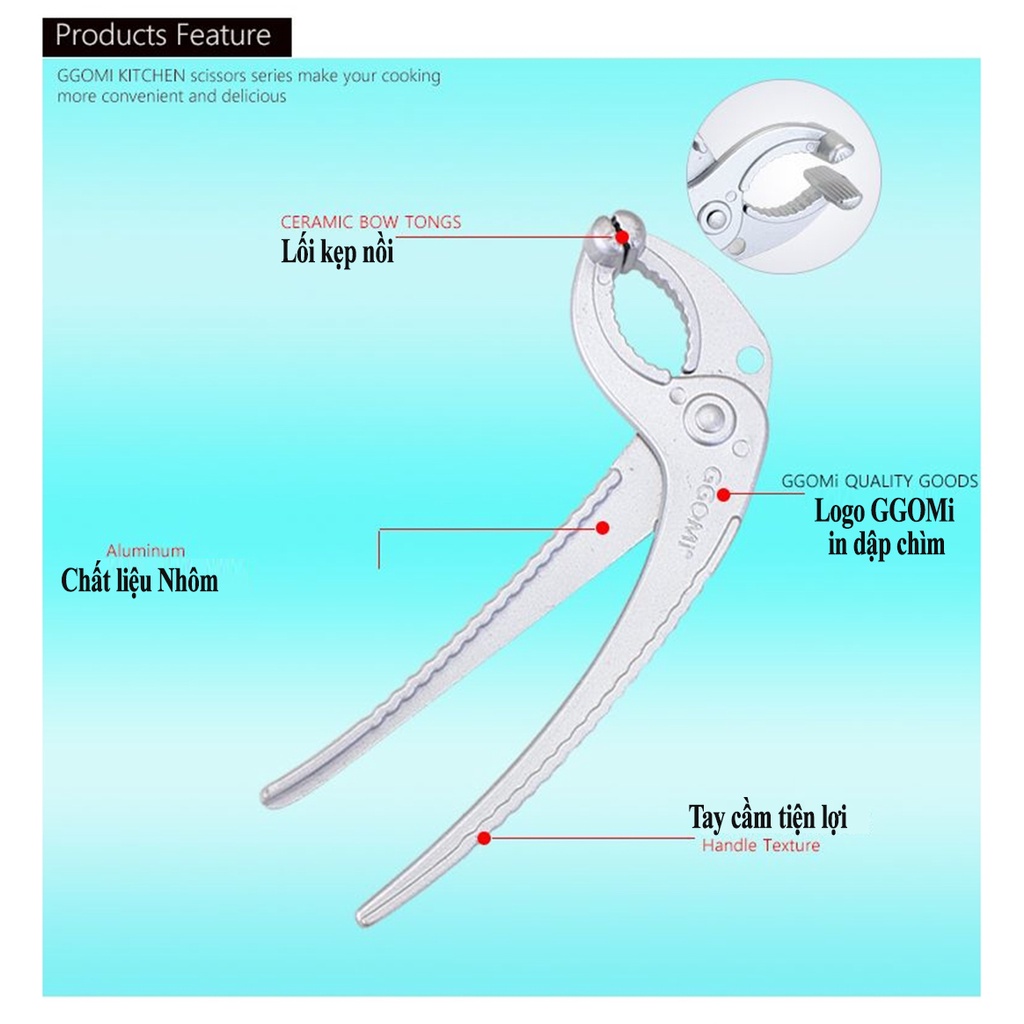 Giới thiệu [HÀNG CHÍNH HÃNG]Kẹp nồi chảo nóng dài 17cm, rộng 5.5 bằng thép không gỉ bền bỉ an toàn khi sử dụng GGOMi Hàn Quốc GG758