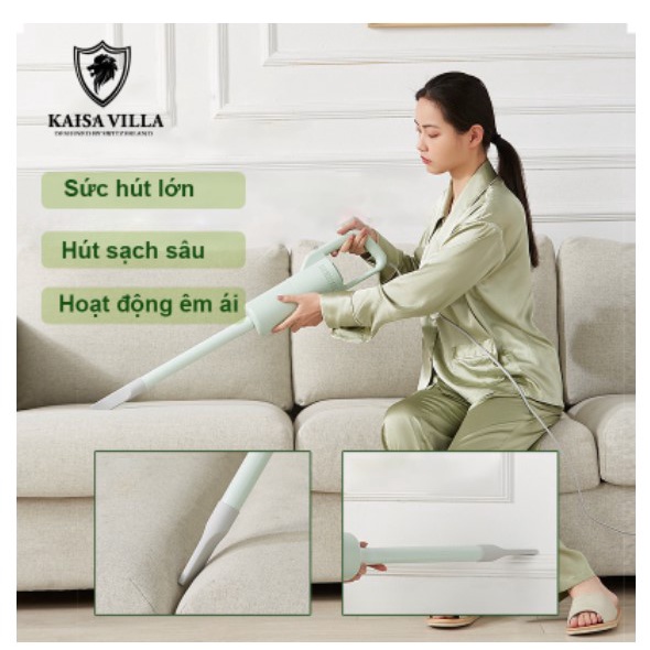 Giới thiệu [Hàng chính hãng] Máy hút bụi Kaisa Villa mini cầm tay lau nhà chó mèo máy hút bụi giường ( Xanh ngọc- Hồng)