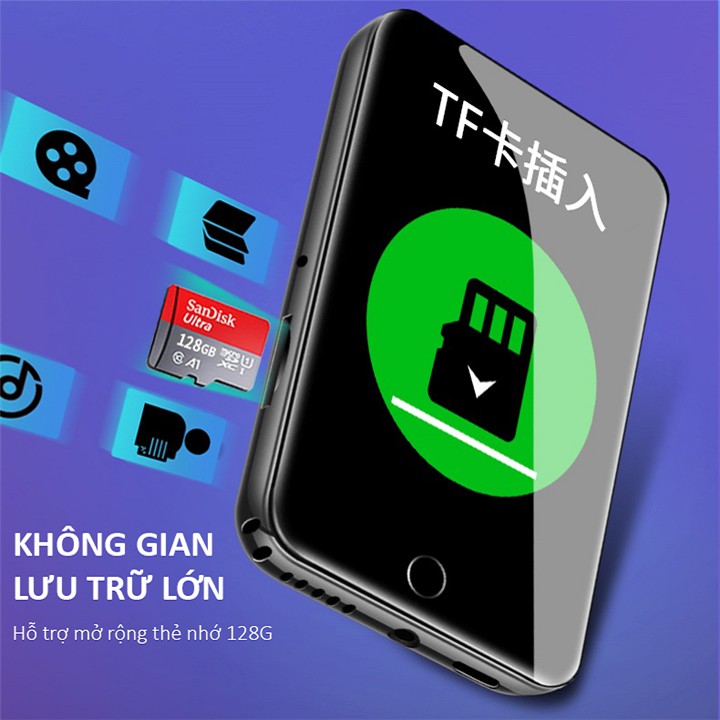 [HÀNG CHÍNH HÃNG] MÁY NGHE NHẠC XEM PHIM KHÔNG DÂY MÀN HÌNH CẢM ỨNG BLUETOOTH RUIZU M7 BỘ NHỚ TRONG 8GB