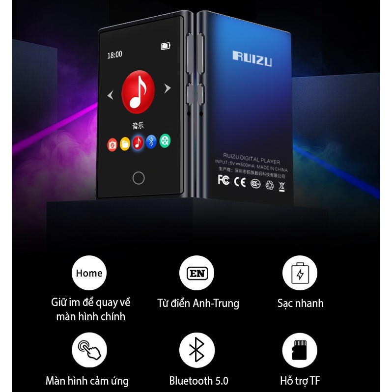 [HÀNG CHÍNH HÃNG] MÁY NGHE NHẠC XEM PHIM MÀN HÌNH CẢM ỨNG BLUETOOTH RUIZU M2 BỘ NHỚ TRONG 8GB