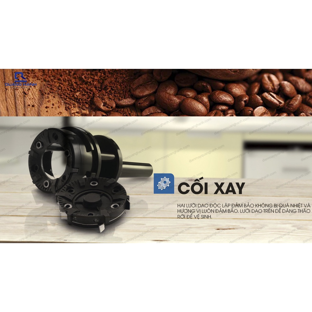 📌 Hệ thống răng nghiền: nhờ 2 bánh răng xay hoàn toàn cà phê, tránh tình trạng quá nóng và giữ hương vị cà phê. Bánh răng nghiền có thể tháo ra dễ dàng vệ sinh.