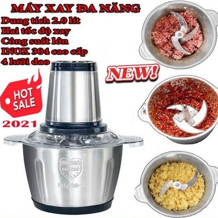 Mô Tả Sản PhẩmDung tích: 2L Công suất: 300W Vỏ máy: Chất liệu Inox 304 cao cấp, chịu nhiệt Lưỡi dao: Thiết kế 4 lưỡi bằng thép không gỉ - Sắc bén cho khả năng nhồi và đảo tốt Hoạt động bằng điện, tích hợp nút nhấn dễ thao tác Chuyên về xay thịt, cá , rau , đá viên, hạt ngũ cốc và đồ ăn dặm, đáp ứng tốt yêu cầu của người dùng Dễ dàng vệ sinh máy sau khi sử dụng