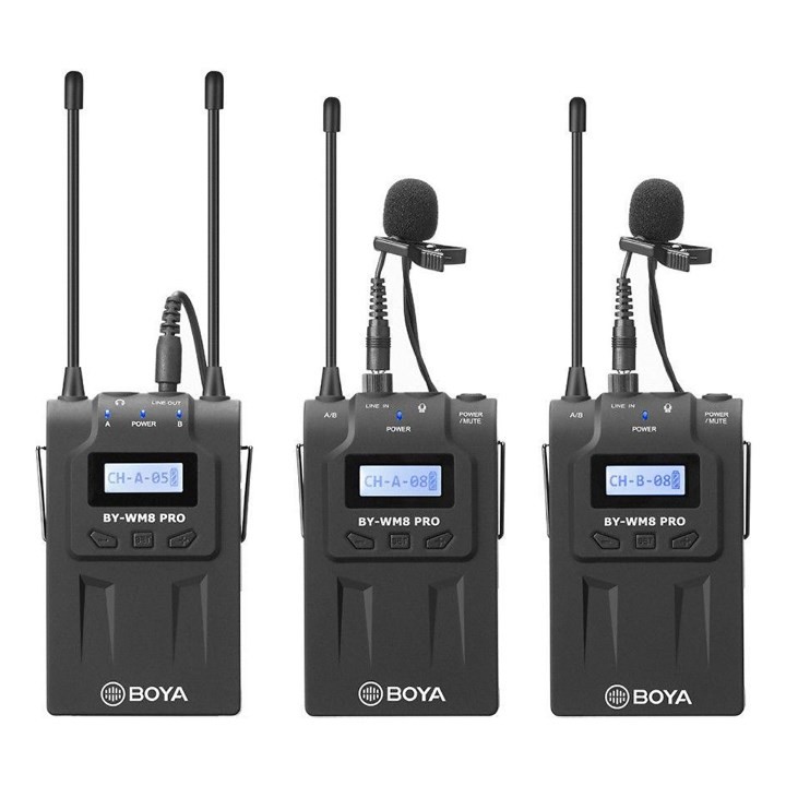 [Hàng Chính Hãng] Micro Không Dây Thu Âm Chuyên Nghiệp Dành Cho Máy Ảnh, Máy Quay Boya By-Wm8 Pro-K2Microphone Thu Âm Boya By-Wm8 Được Thiết Kế Dành Cho Các Dòng Máy Ảnh, Máy Quay Chuyên Dụng. Sản Phẩm Sử Dụng 48 Kênh Sóng Uhf Nằm Trong Dải Tần Riêng, Đảm Bảo Chống Nhiễu Và Ổn Định Tín Hiệu. Người Dùng Có Thể Sử Dụng Micro Boya By-Wm8 Trong 6 Tiếng Liên Tục Với 2 Pin Tiêu Aa Bền Bỉ.