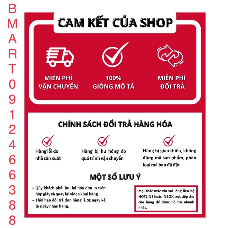 ⚠️ Do quy định của Shopee không cho phép đồng kiểm, quý khách vui lòng quay video trước/trong khi bóc gói hàng. Các khiếu nại sai, thiếu sản phẩm sẽ không giải quyết nếu không có video hợp lệ.