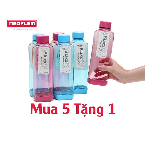 Giới thiệu [Hàng chính hãng - Mua 5 tặng 1] Combo 5 Chai đựng nước bằng nhựa Tritan- Staxx M - 700ml, Neoflam Hàn Quốc
