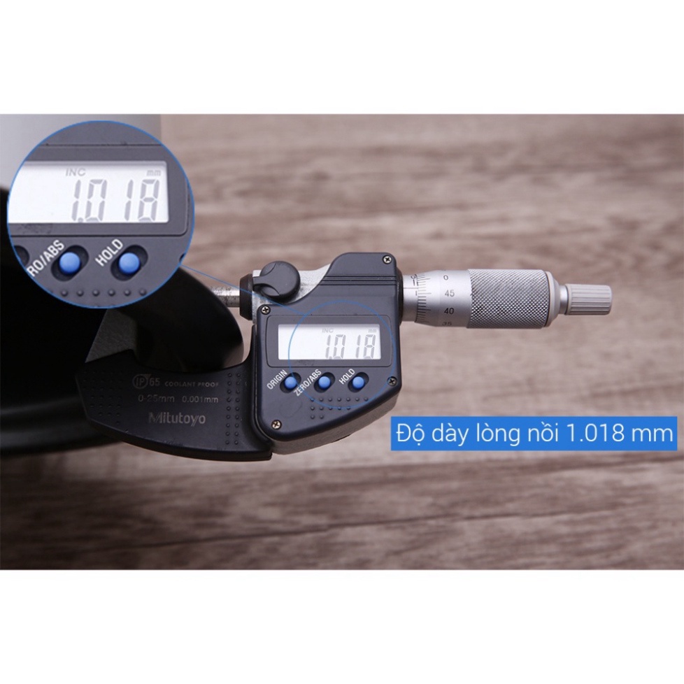 Lòng nồi 2 lớp bằng hợp kim nhôm phủ chống dính, dày 1.018 mm, hạn chế cháy dính, an toàn, bền bỉ, dễ vệ sinh