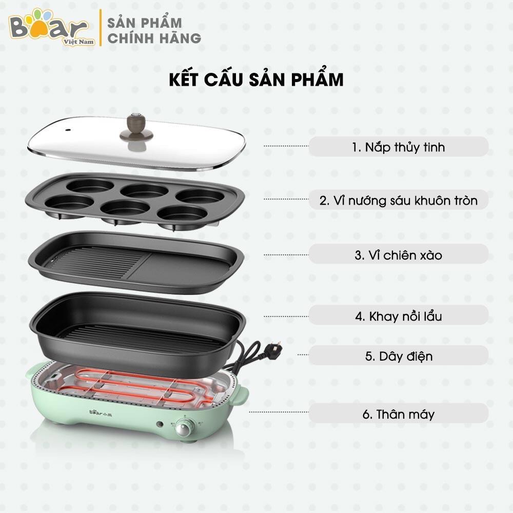 HÀNG CHÍNH HÃNG Nồi lẩu nướng 3 khay_ Nồi lẩu đa năng_ BEAR_ 4L_BẢO HÀNH 12 THÁNG