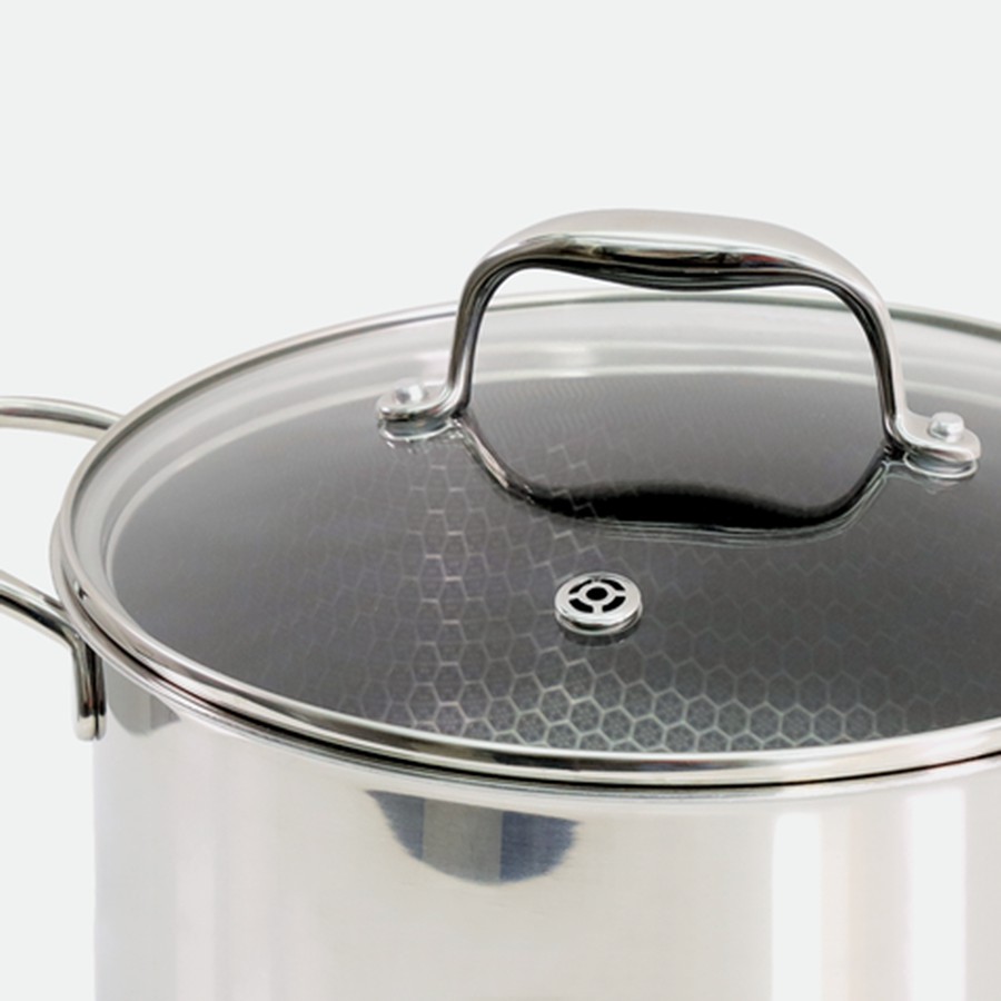 * BLACKCUBE là khắc bề mặt inox để làm trồi lên những trụ nhỏ xếp hình tổ ong, trụ inox trồi cao che chắn và bảo vệ những tác động từ các dụng cụ nấu ăn lên lớp không dính.