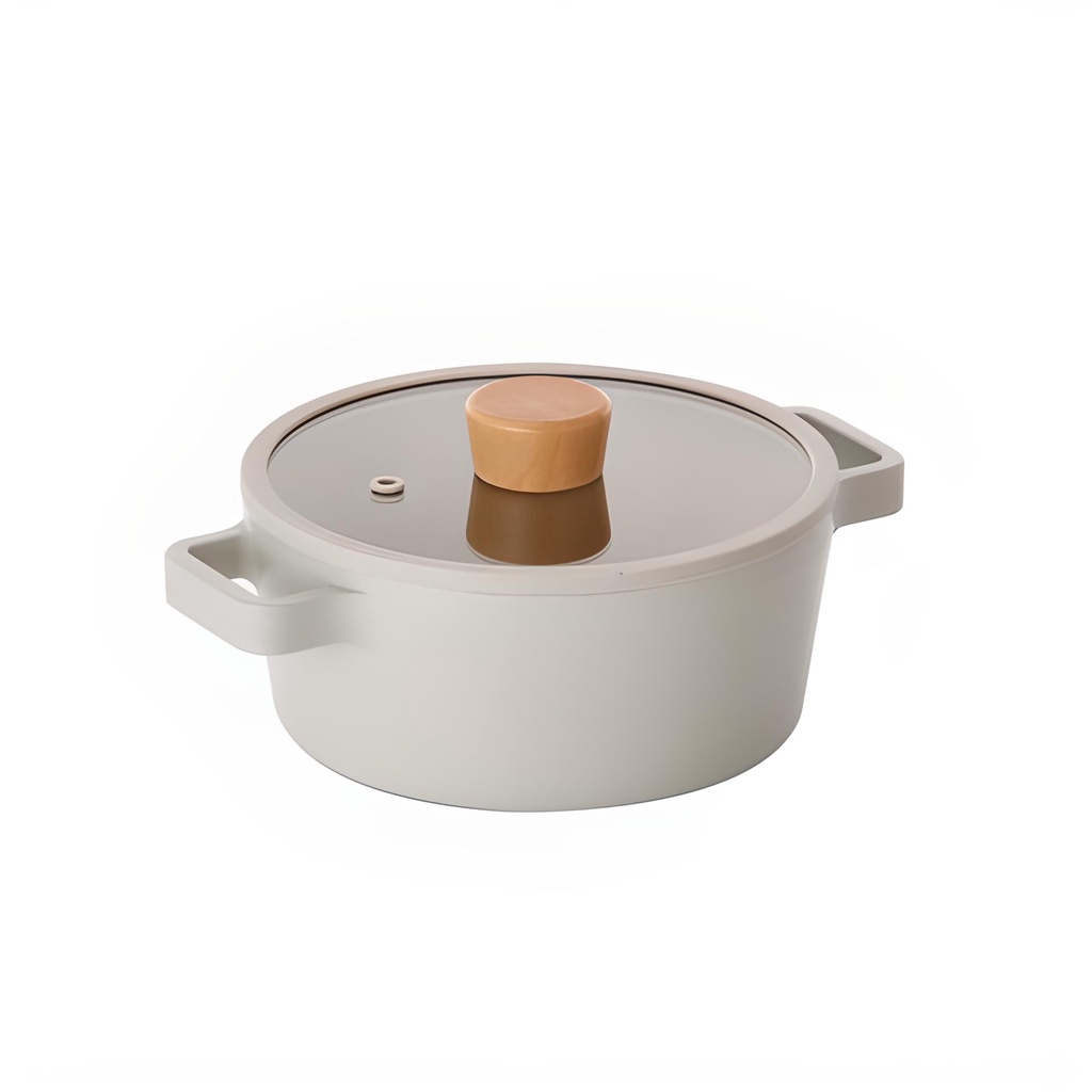 Nồi nông Neoflam Fika 18cm, dung tích: 1.5L, kích thước: 18 x 18 x 11 (cm), trọng lượng 1kgNồi nhỏ 18 cm với 2 tay cầm đúc liền, lớp vỏ gốm chống dính màu trắng, trong lòng tráng gốm màu vàng nhạt. Màu sắc sang trọng, siêu chống dính Xtrema.