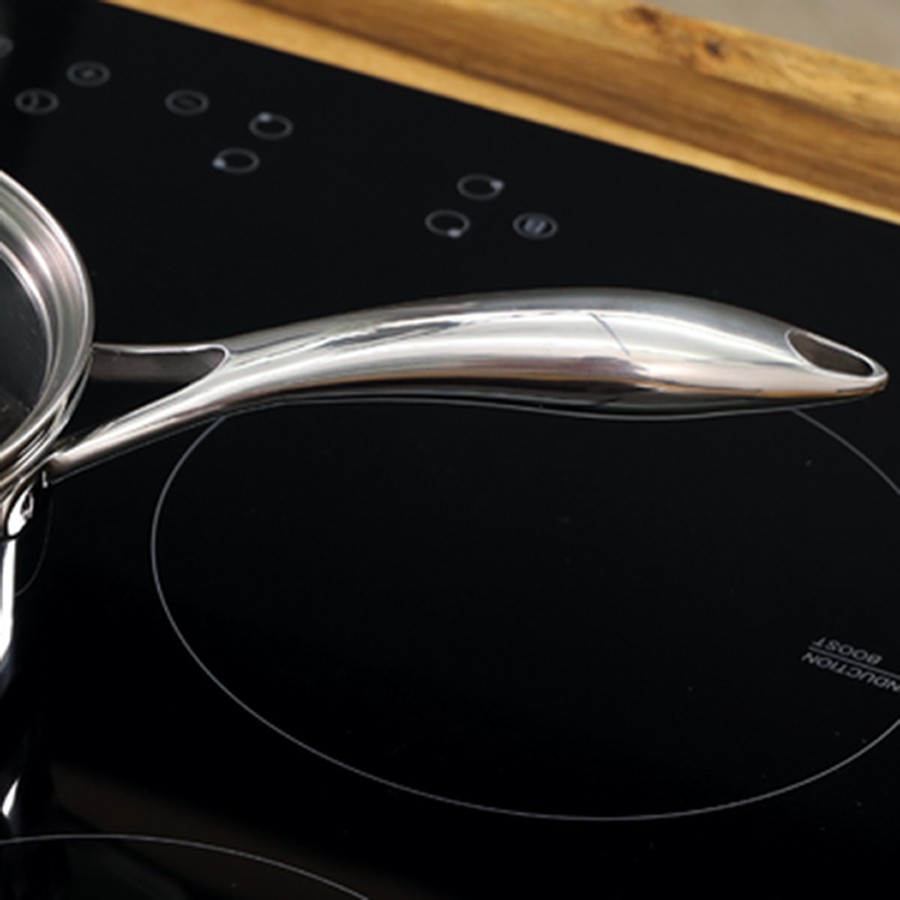 * Cấu trúc inox 3 lớp, vỏ ngoài là INOX 430 để bắt từ, thích hợp với mọi loại bếp từ kể cả những bếp kén nồi chảo; lớp giữa dầy 1.2mm là NHÔM để dẫn và giữ nhiệt, lớp trong tiếp xúc với thực phẩm là INOX 304 tốt cho sức khoẻ.