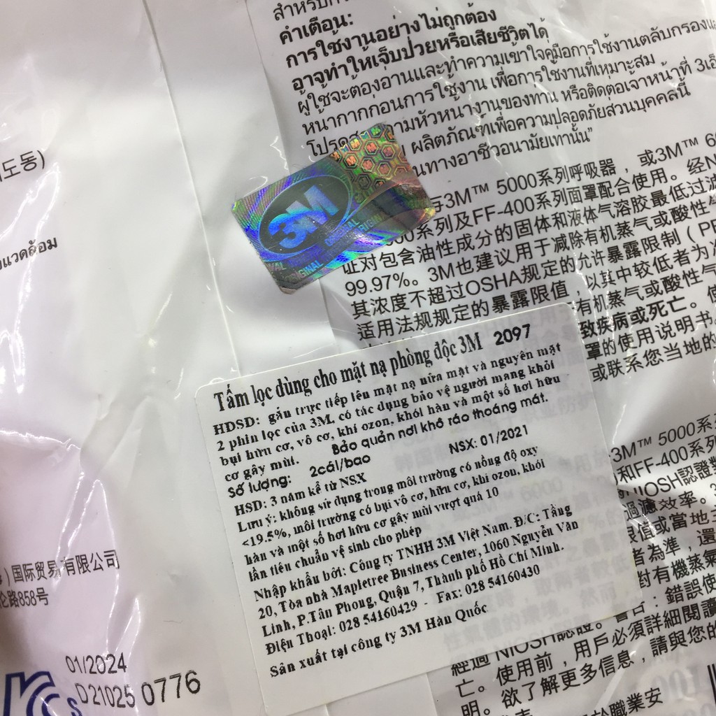 - Ngoài lọc bụi, tấm lọc 3M 2097 còn có khả năng lọc hơi hữu cơ ở nồng độ loãng. Trường hợp cần lọc hơi hữu cơ, vô cơ hoặc axit ở nồng độ cao thì người dùng cần sử dụng phin lọc chuyên dụng như 3M 6001, 6003, 6006...