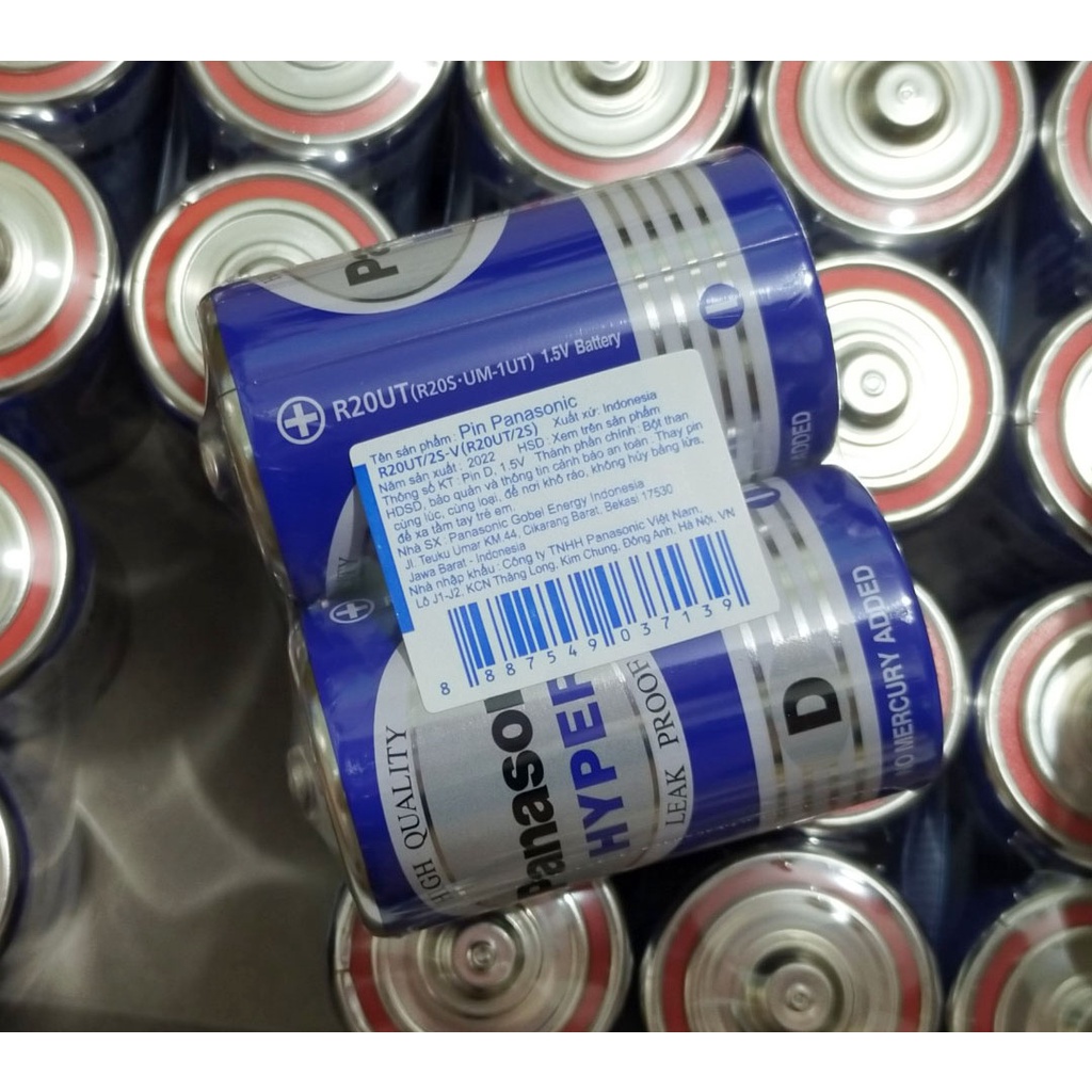 Pin Đại Size D Panasonic R20UT/2S Vỉ 2 Viên Made in Indonesia Chính hãngLoại pin: Pin carbon