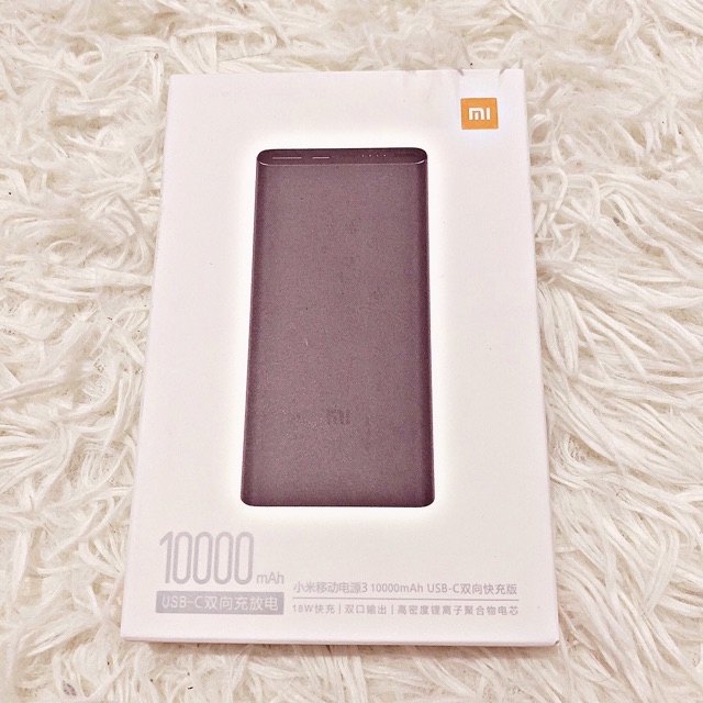 Sản phẩm đi kèm : 1 pin sạc nhanh + dây sạc-Là một sản phẩm mới của Xiaomi trong năm 2019, chính vì thế, pin sạc dự phòng Xiaomi 10000mAh thế hệ 3 cũng sở hữu đôi chút sự thay đổi trong thiết kế. So với viên phiên bản cũ, thì tông màu trắng truyền thống đã dần được thay thế bằng màu đen. Đây cũng là một đặc điểm để phân biệt sản phẩm với các dòng pin dự phòng cũ hơn.
