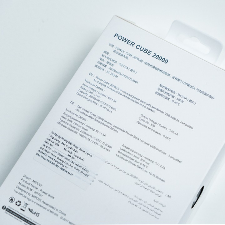 HIBUCENTER xin trân trọng giới thiệu sản phẩm Pin Sạc Dự Phòng Mipow Power Cube 20000 SPT07 chính hãng USA.🎐 MIPOW Power Cube 20000 là sản phẩm pin dự phòng Mipow được hãng hướng đến những bạn trẻ năng động, đam mê với sự dịch chuyển. MIPOW cũng quảng cáo rằng với chỉ 1 mình viên pin này, bạn sẽ sạc cho tất cả các thiết bị di động của gia đình 4 người trong cả ngày dài.