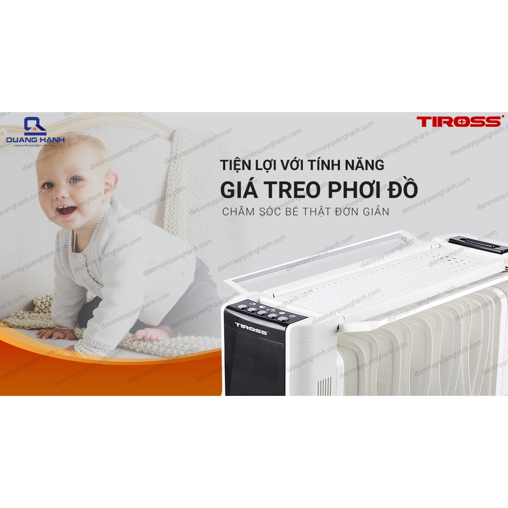 Máy sưởi dầu T.i.r.o.s.s TS9213Còn gì tuyệt vời hơn khi vừa được sưởi ấm vừa được tạo ẩm cho không khí thêm cân bằng trong những ngày đông khô hanh. Máy sưởi dầu Tiross TS9213 chính là giải pháp hoàn hảo mang lại trải nghiệm tuyệt vời cho bạn, tạo cảm giác dễ chịu, làn da luôn mềm mại mặc cho thời tiết vô cùng khắc nghiệt. Nếu bạn là người yêu thích sản phẩm điện gia dụng chất lượng cao, thiết kế đẹp thì hãy tiếp tục tìm hiểu thông tin về Máy sưởi dầu Tiross TS9213 qua bài viết sau đây của Điện máy Quang Hạnh nhé.