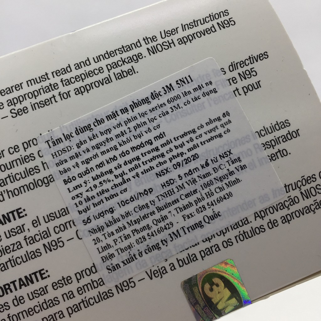 [Hàng chính hãng] Tấm lọc bụi 3M 5N11 lọc bụi nhỏ đến 0,3µm, dùng cho phin lọc 3M 6001, 3M 6003, mặt nạ 3M 6200