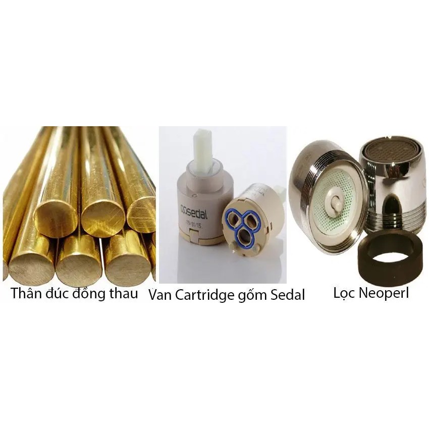 Thân vòi đúc bằng đồng cao cấp chống gỉ, chống cặn, nâng cao độ bền của sản phẩm