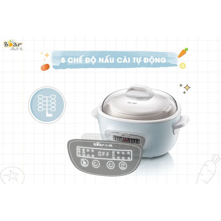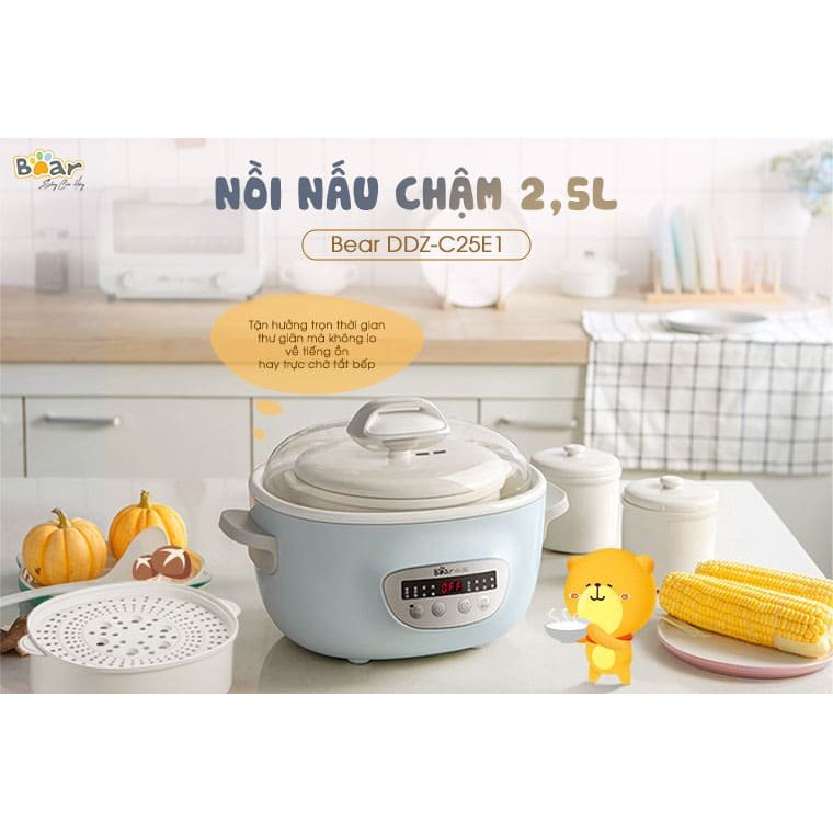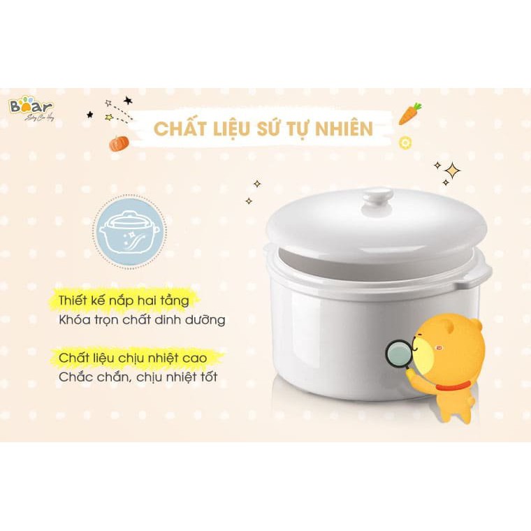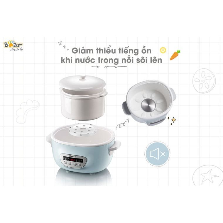 HÀNG CHÍNH HÃNGNồi Nấu Cháo Cho Bé_Nồi Nấu Chậm_Hầm Cháo Đa Năng, Kèm Lồng Hấp_BEAR Dung Tích 2,5L - Bảo Hành 12 Tháng