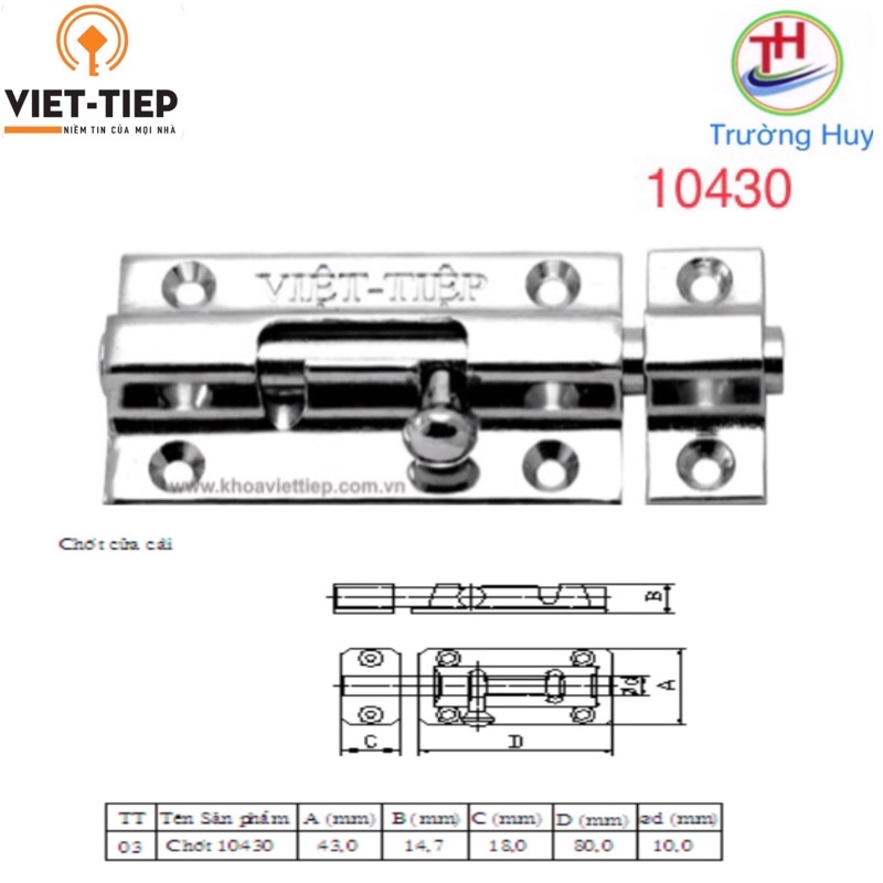 Giới thiệu [chính hãng] Chốt cửa Việt Tiệp - 10430