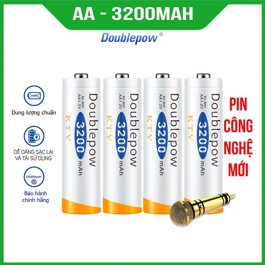 [Hàng chuẩn] Hộp 4 viên Pin AA sạc lại Doublpow dung lượng 3200mAh (màu cam KTV) - dành cho Micro Karaoke